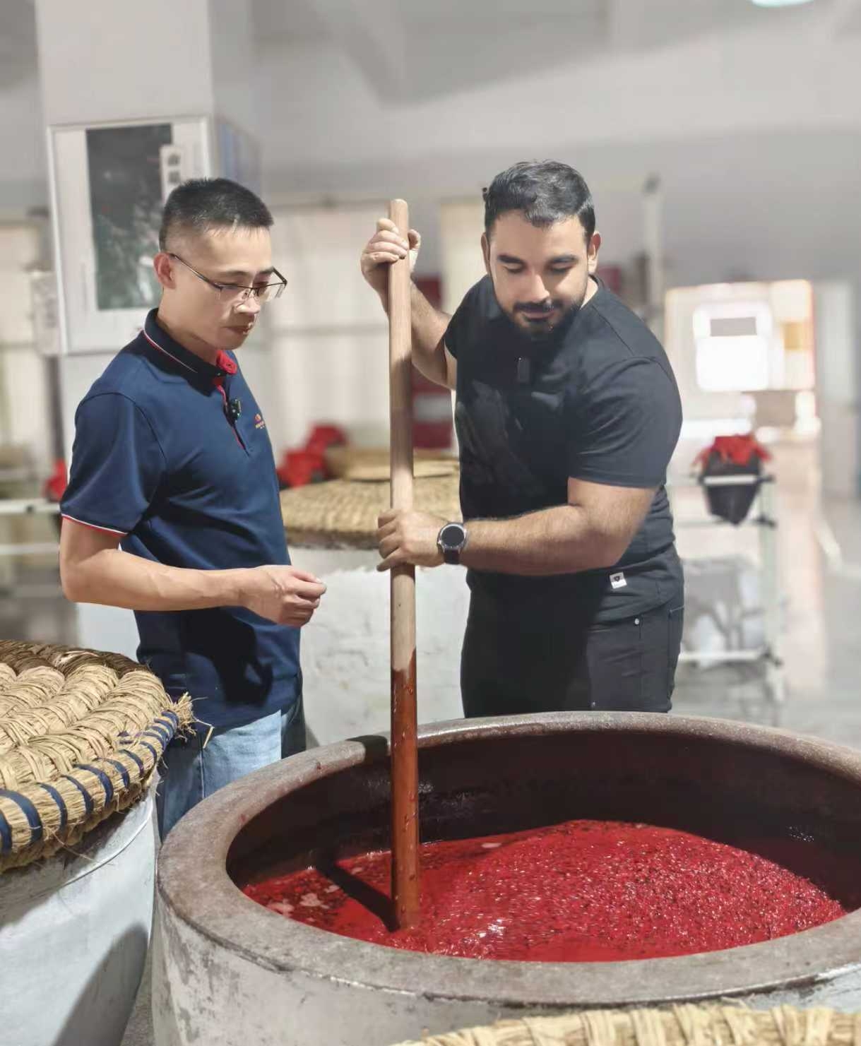 阿根廷友人探秘非遗工坊“千年宋红” 酒香飘向世界