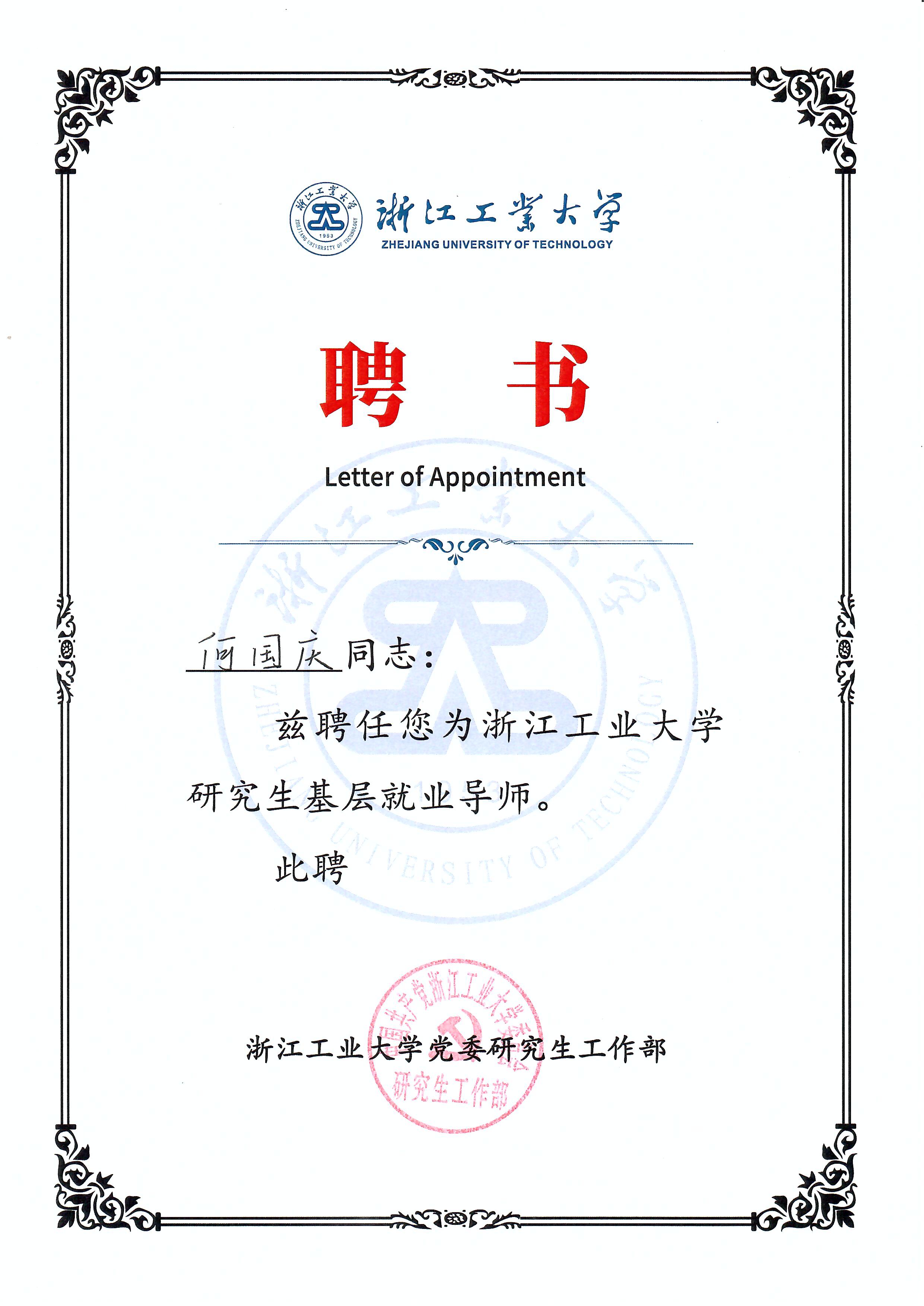 何国庆受聘浙工大研究生基层就业导师